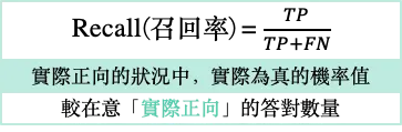 在所有實際值都是 Yes的狀況中,較在意 True Positive 的數量